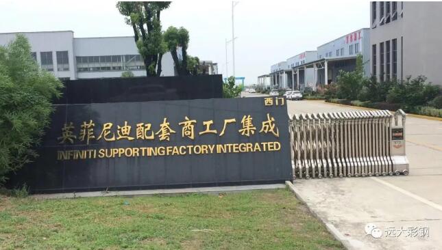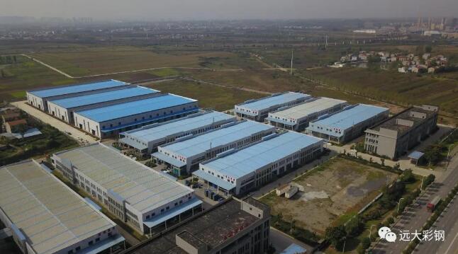 襄宏基遠大建筑鋼品有限公司2019年供貨工程之叁: 英菲尼迪工業(yè)園,屋面為遠大彩鋼的高空壓瓦設(shè)備壓制的寶鋼黃石海藍。